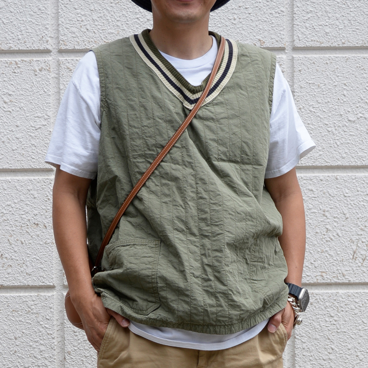 このコーディネートは、シンプルなアイテムを組み合わせつつ、各アイテムの持つ個性を活かしたバランスの良いカジュアルスタイルになっています。