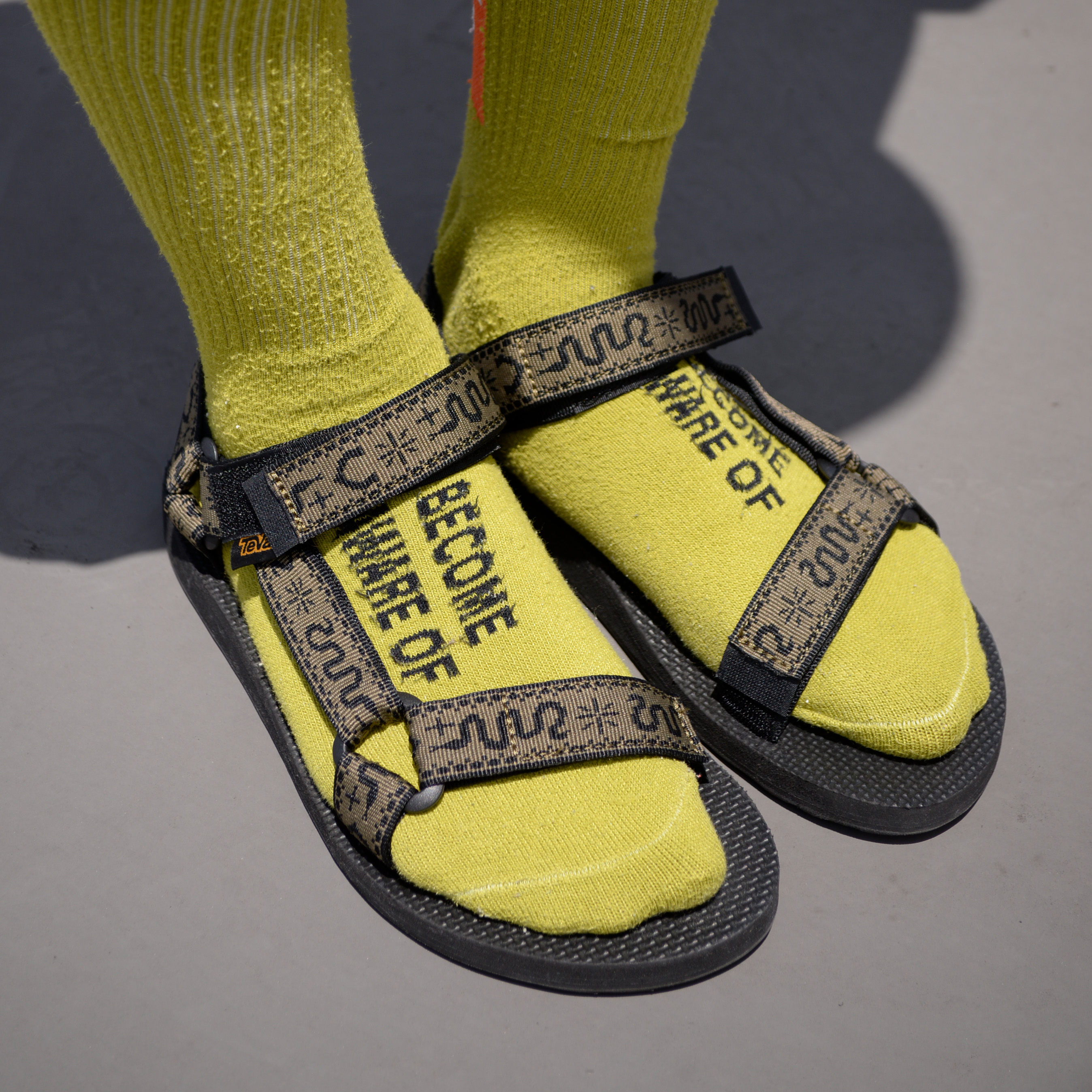 アウトドア風のアイテムを中心に、色のアクセントを上手に取り入れて個性的かつカジュアルなスタイルを作り出しています。