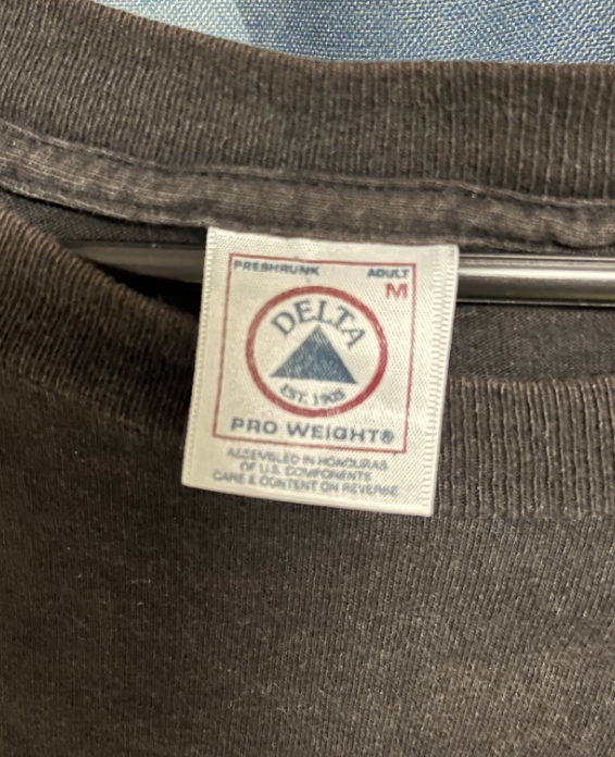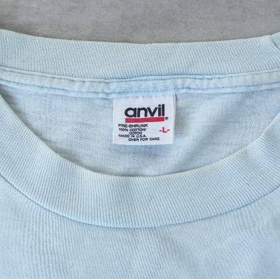 まず、90年代後半のアメリカ規格のTシャツに多く見られる点。この頃からアメリカの古着ボディメーカーがいち早く採用し始めました。ただし、USA製は少なめです。