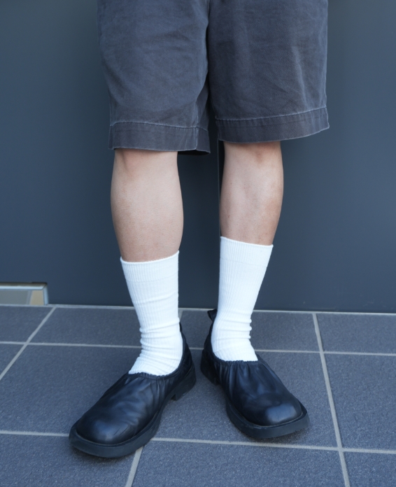 フェード感のある色味なので、他のアイテムもトーンを揃えて、自然に馴染むよう意識しています。足元には少しだけ違和感のあるディテールを取り入れることが多く、その“ズレ”が全体の雰囲気を引き締めてくれる気がしています。マグリットの作品に通じるような、日常の中にある非日常みたいな感覚があって、個人的にすごくしっくりきます。