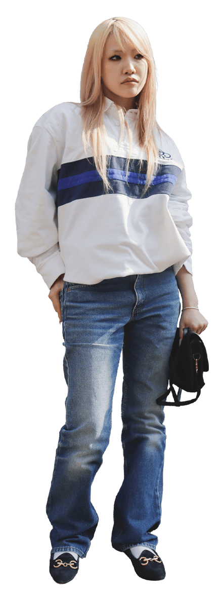 ラルフローレンのラガーシャツは、1枚で主役になれる万能なアイテムです。白ベースにネイビーのラインが映えるクリーンな配色なら、カジュアルなデニムスタイルも大人っぽくアップデートされます。足元にビットローファーを合わせて、少しフォーマルな印象をプラスすることで、カラフルなラガーシャツも合わせやすくなります。どこか垢抜けて見える、大人っぽい新生活のスタイルが楽しめます。