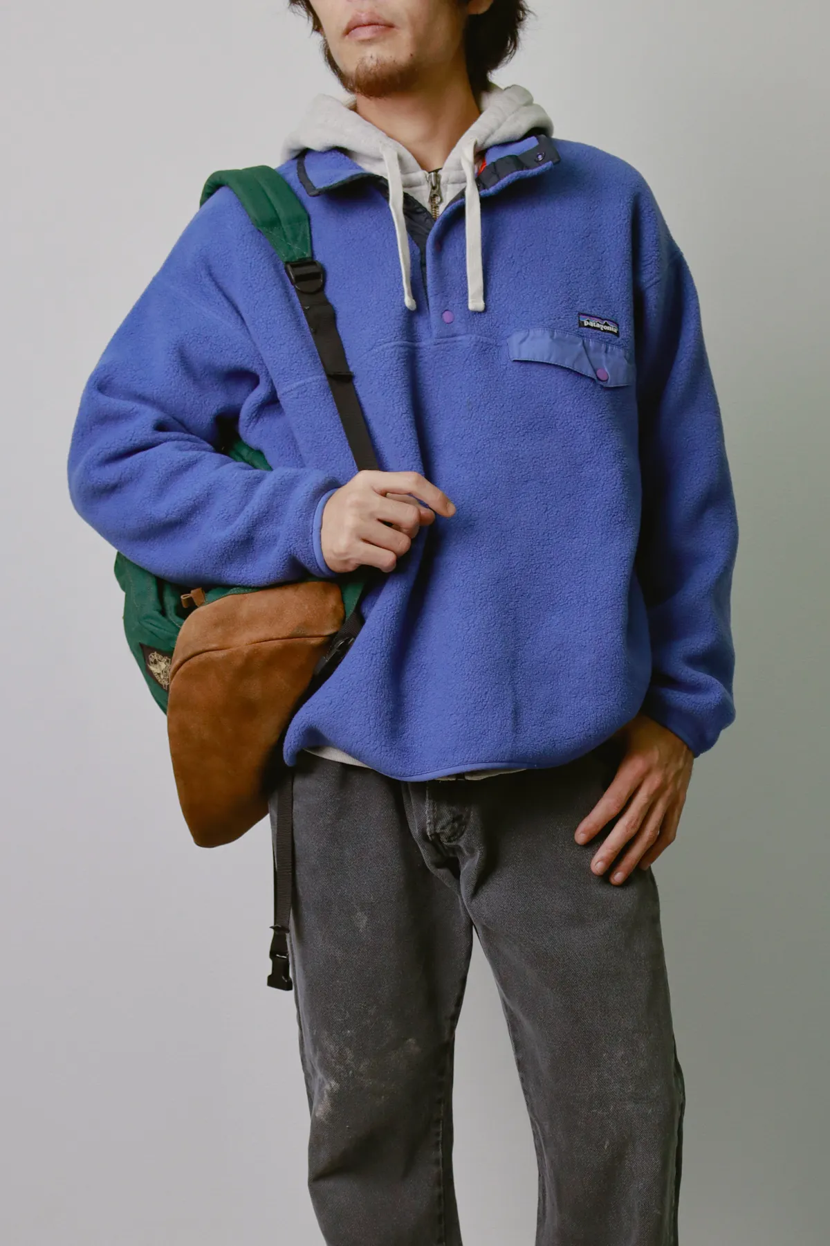 鮮やかなフリースを主役に、インナーには同系色のパーカーをチョイス。素材とトーンを合わせ、アウトドアアイテムを都会的な雰囲気に。防寒性とトレンドを両立する絶妙なレイヤード。このセットでの着こなしが、冬の快適さと洗練されたシルエットを両立させます。