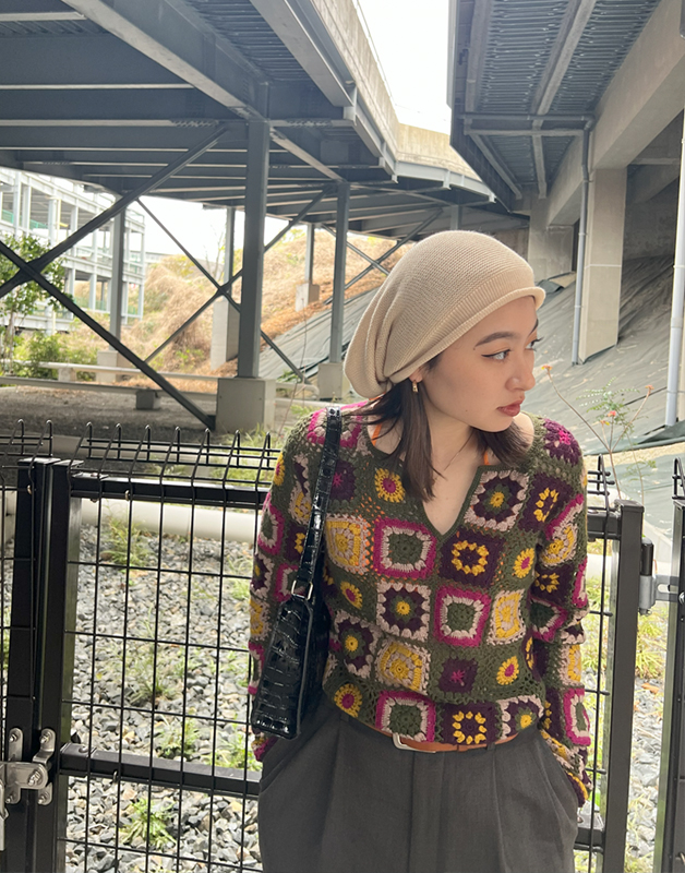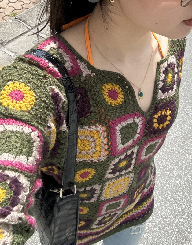 デザイン、サイズ感が良かったのと網目が粗いクロッシェニットは大人な肌見せができるので良いなと思い購入しました。