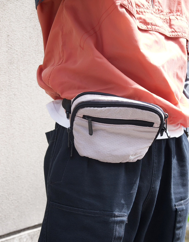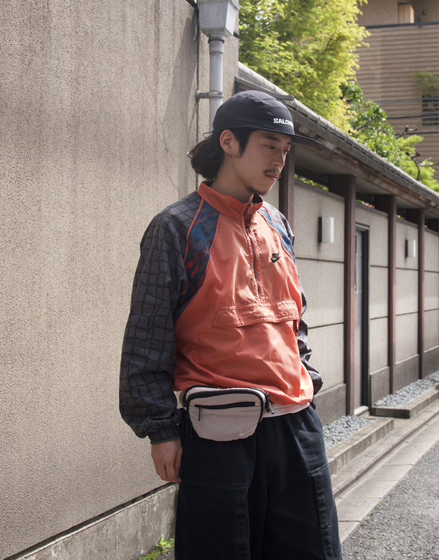 ナイロン素地なのでテック系のコーデがオススメです! この「NIKE(ナイキ)」のアノラックに合わせてウエストポーチも「NIKE(ナイキ)」にしてみました。そしてキャップとスニーカーは「SALOMON(サロモン)」で合わせて二つのブランドを違和感なく混ぜ込んでみました。 アノラックとスニーカーはオレンジで統一感を出してます。