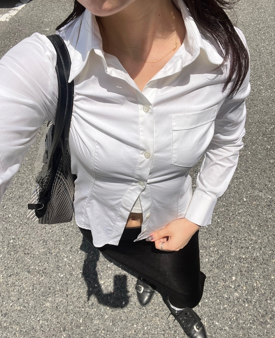 タイトめでウエストマークのあるシャツを探していたので!