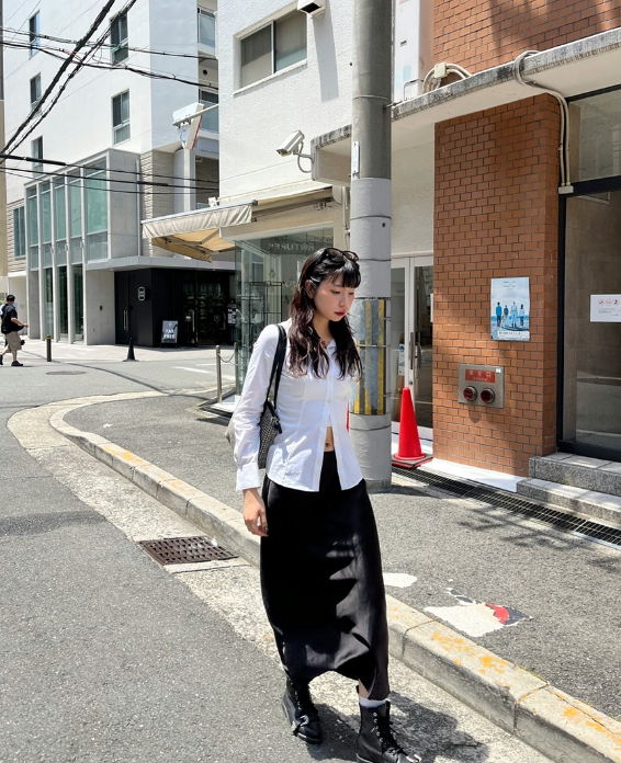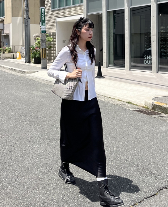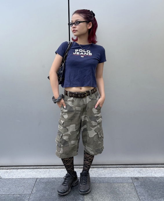 ジャスト目なTシャツにバギーショーツを合わせて、Aラインシルエットが今の気分です。小物にレースソックスやハンドバッグを身に着け、海外ガールっぽさをさらにUPさせました!