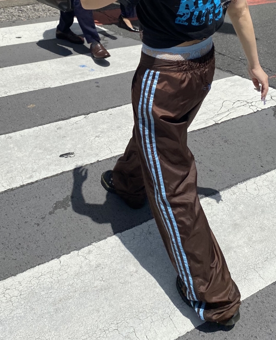 ウエストサイズが大きめなのでレースタイツを履いて少しローウエストめに!おなかチラ見せスタイルが好きです!スポーティーなナイロンパンツにピチT合わせでレディースらしく着こなすのもおすすめです☆