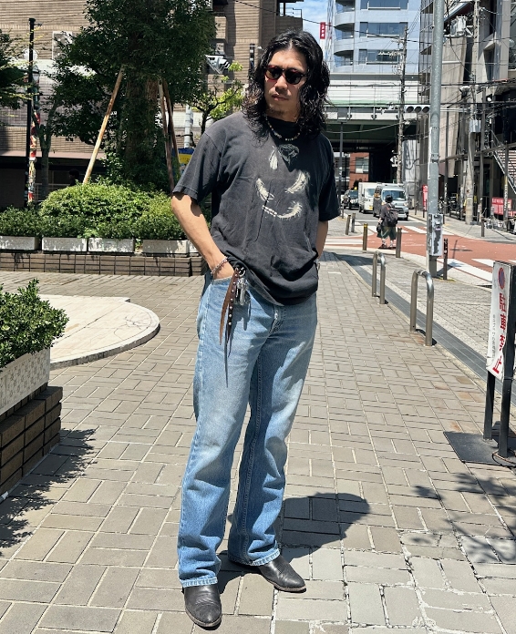 今回は、517とウエスタンブーツを組み合わせて、トップスはTシャツ1枚でラフに着こなしてみました。おすすめの着こなしは、自分のカッコいいと思った服を着ることです。