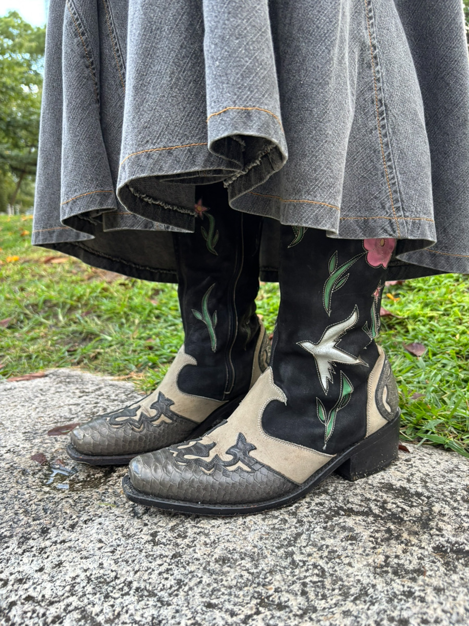 ウエスタンブーツは流行っていることもあって、去年からずっと欲しいと思って探していました。Theウエスタンなデザインだと人と被るので、変わり種を探してやっと一目惚れの柄が見つかりました!