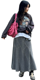 スウェットはメンズっぽいので、スカートなどレディースアイテムをできるだけ使って、メンズに寄りすぎないバランスにするのが好きです★