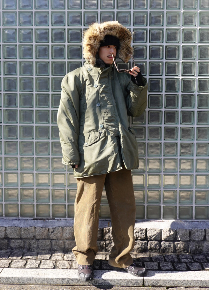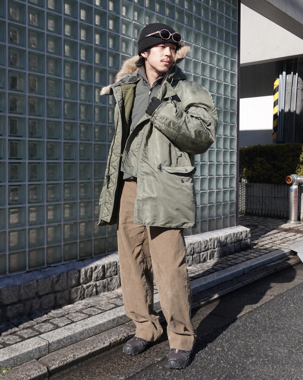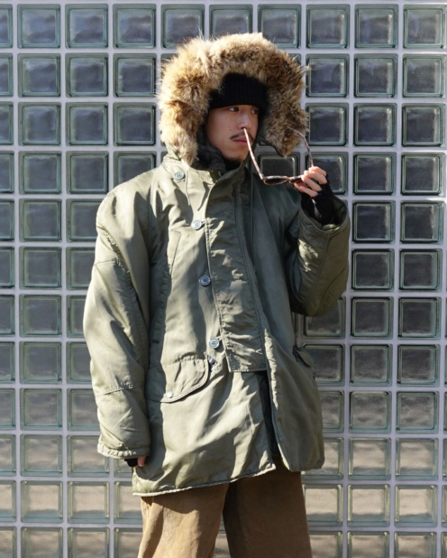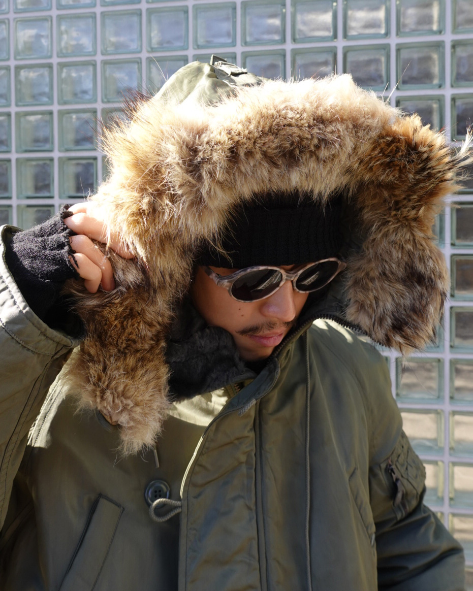 N-3Bフライトジャケットは、寒冷地での使用を目的に米空軍が採用したパーカタイプのジャケットです。極寒地用として採用され、厳しい環境にも対応するため、長めの丈としっかりしたフードが設計されています。アクリルファーとコヨーテファーがございますが、こちらは嬉しいコヨーテファー。見た目も含め好きな方は多いかと思います。真冬のアウターとして最適な一着です。