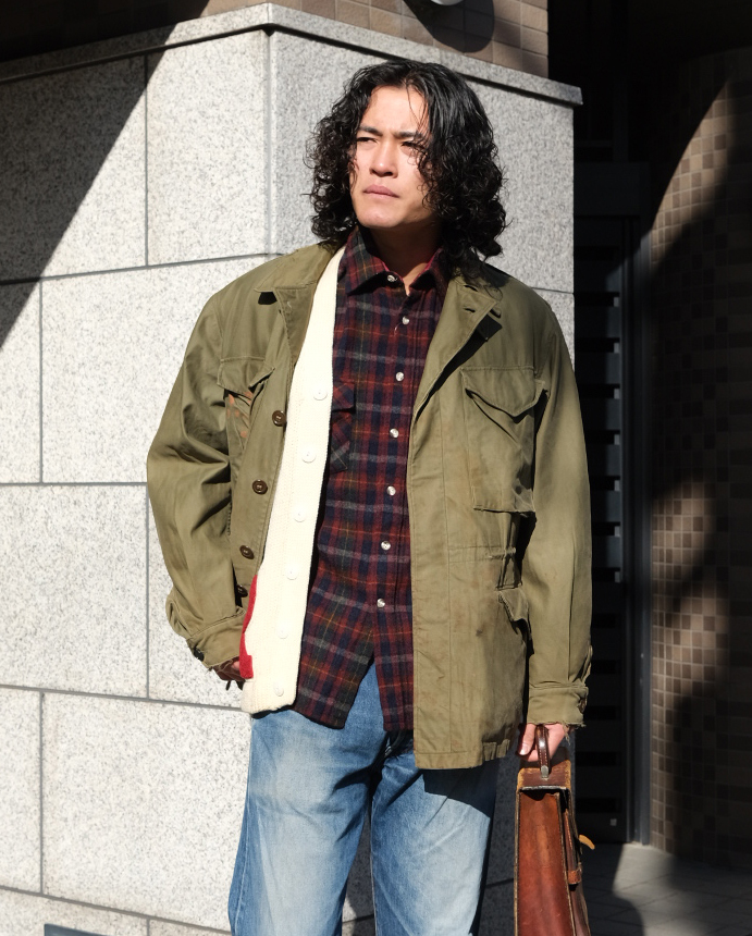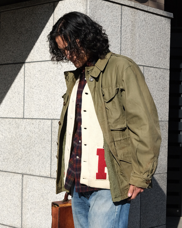 M-43ミリタリーフィールドジャケットは、第二次世界大戦中に米軍が採用したジャケッです。ディティールには、風雨を防ぐための前面フラップ付きボタン留め、ウエストと裾の調整用ドローコード、そして複数のポケットが含まれます。また、M-43はライニングにキルトを施したパイルライナーを追加でき、寒冷地での着用に対応していました。後の4ポケットスタイルのM-51,M-65の米軍フィールドジャケットの始祖となるM-43。ミリタリージャケットの名品です。