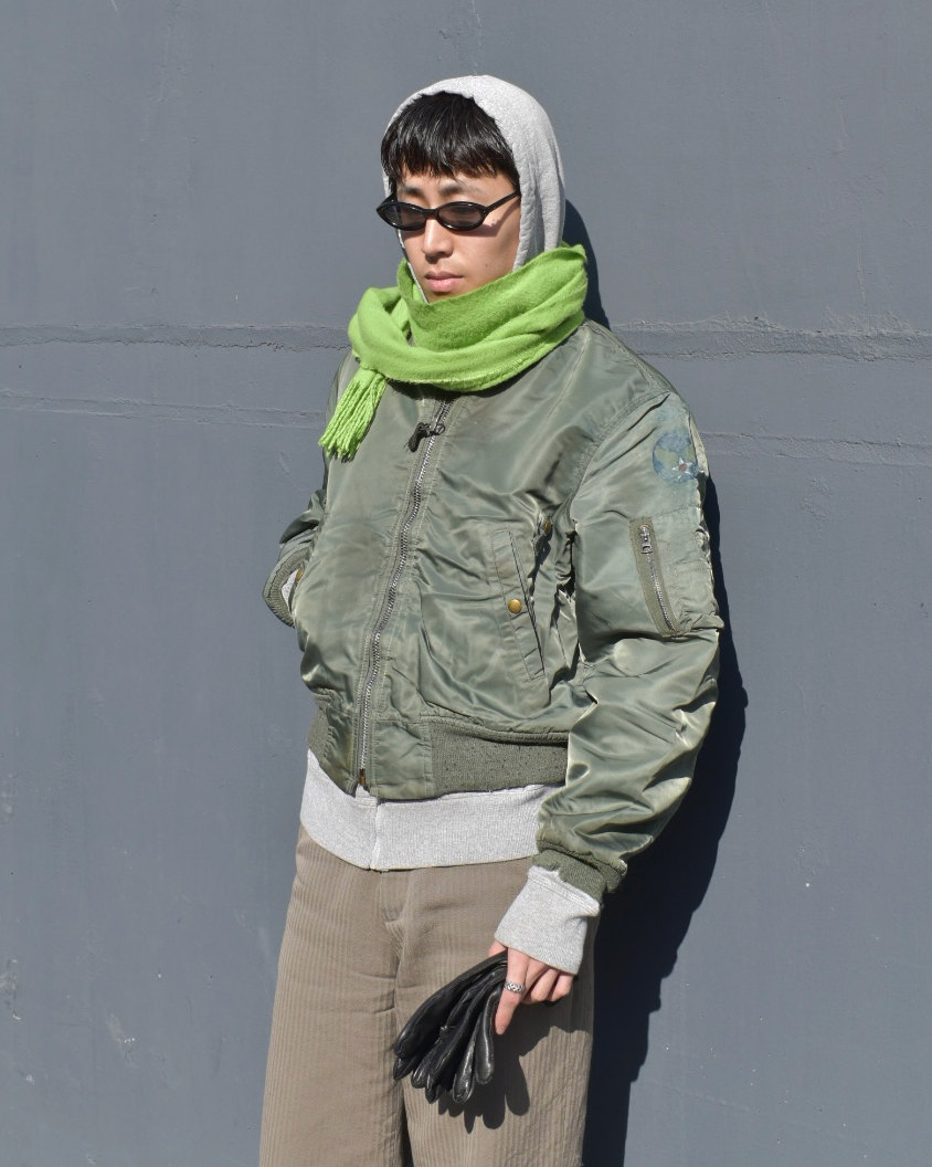 MA-1フライトジャケットは、1950年代に米空軍が採用したフライトジャケットで、ナイロン製の耐水性シェルと保温性を備えたリバーシブル仕様が特徴です。多くのミリタリーウェアを手掛けてきたSPIWAK製のMA-1、素材、作りは間違いない一着です。定番ではありますが、流行りの短丈ジャケットです。是非。