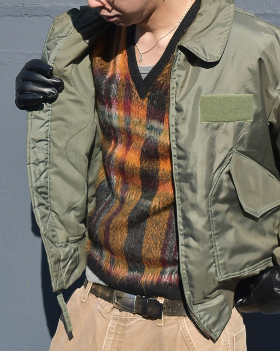 CWU-45/Pフライトジャケットは、米空軍が寒冷地用に採用したジャケットで、耐火性と保温性を兼ね備えたノーメックス素材が特徴です。MA-1の後継モデルとして設計され、耐火性能と寒冷地での防寒性能を強化しています。インターミディエイトゾーン用として採用しているため、冬の着用には最適なフライトジャケットです。短丈でスッキリ着用でき、非常に使い勝手が良い一着です。