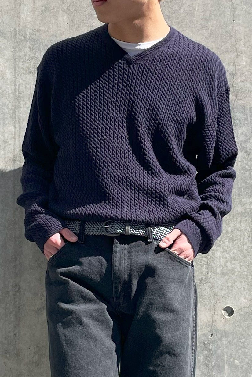 ブラックデニムは引き締まった印象を与えるので、Vネックのニットを合わせて程よくリラックス感をプラス。 とりあえずデニムが一本欲しい時に太過ぎず細過ぎないこんなシルエットのデニムを持っておけば流行り廃り無くずっと履けます。