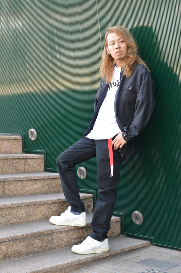 ベルトを差し色に都会的なストリートスタイルを提案。